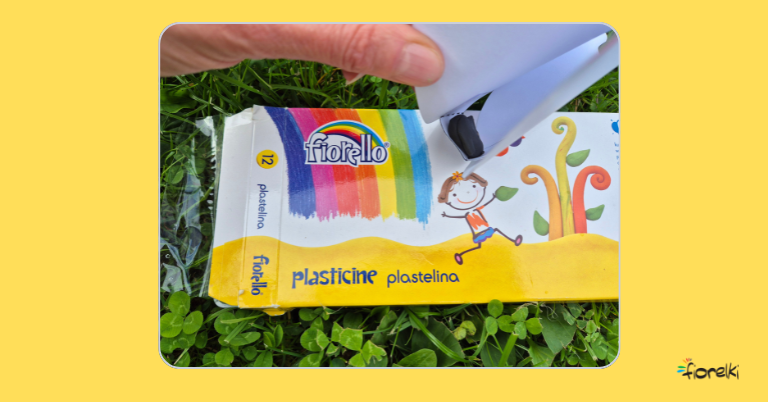 Na koniec przyklejamy kawałek plasteliny na prostokącie pomiędzy duszkami – dzięki temu nasza praca jest stabilniejsza i zyskuje ciekawy efekt 3D.