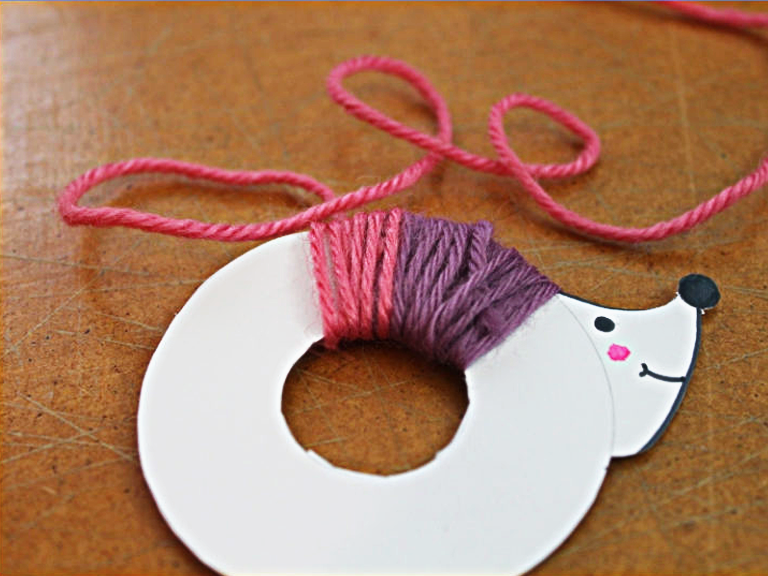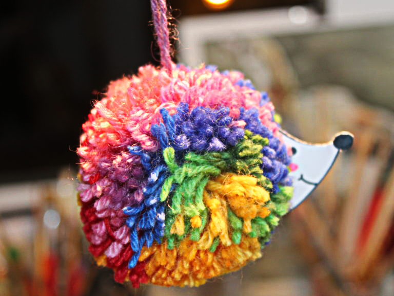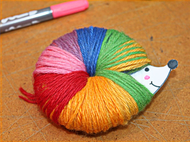 Powinien powstać nam kolorowy pompon. Jeśli chcemy, możemy w łatwy sposób zrobić z jeża zawieszkę, na przykład na lampę przy biurku. Wystarczy przewlec kolejny kawałek włóczki przez kartonik w środku pomponu, albo przykleić go klejem uniwersalnym. I gotowe!