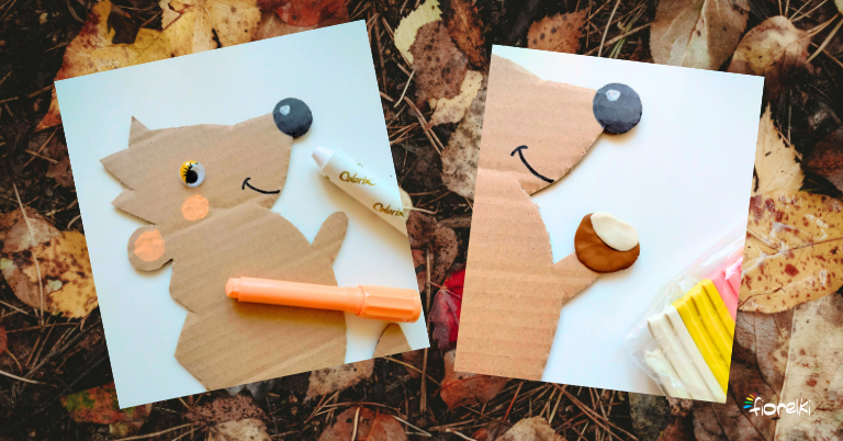 Markerem rysujemy nosek i uśmiechniętą buzię, a następnie przyklejamy ruchome oczko. Kremową kredką dodajemy delikatne detale – kontury pyszczka i łapki. Z plasteliny Carioca formujemy małego kasztanka i przyklejamy go na łapce jeżyka. To bardzo jesienny akcent!