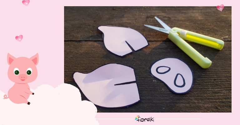 Korzystając z nożyczek Grand wycinamy zestaw składający się z jednego ryjka i pary uszu.
