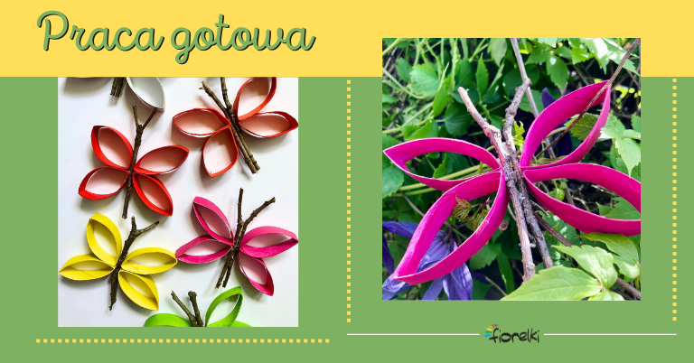 Kiedy farba wyschnie, tniemy rolki na równe paski. Powinny one mieć szerokość odpowiednią dla skrzydeł motyla. Następnie malujemy również środek każdego paska i pozostawiamy do wyschnięcia.