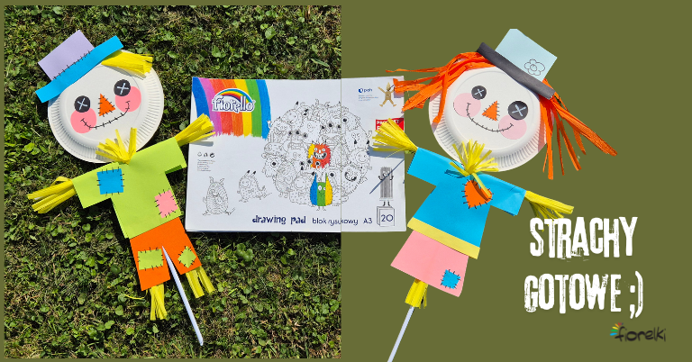 Gotowy strach na wróble to wesoła i kolorowa postać, która może stać się świetną dekoracją sali przedszkolnej, jesiennego kącika w domu czy nawet elementem teatralnej zabawy. Prosty w wykonaniu, a jednocześnie efektowny projekt plastyczny sprawi dzieciom mnóstwo radości i pozwoli im poczuć się jak prawdziwi artyści.